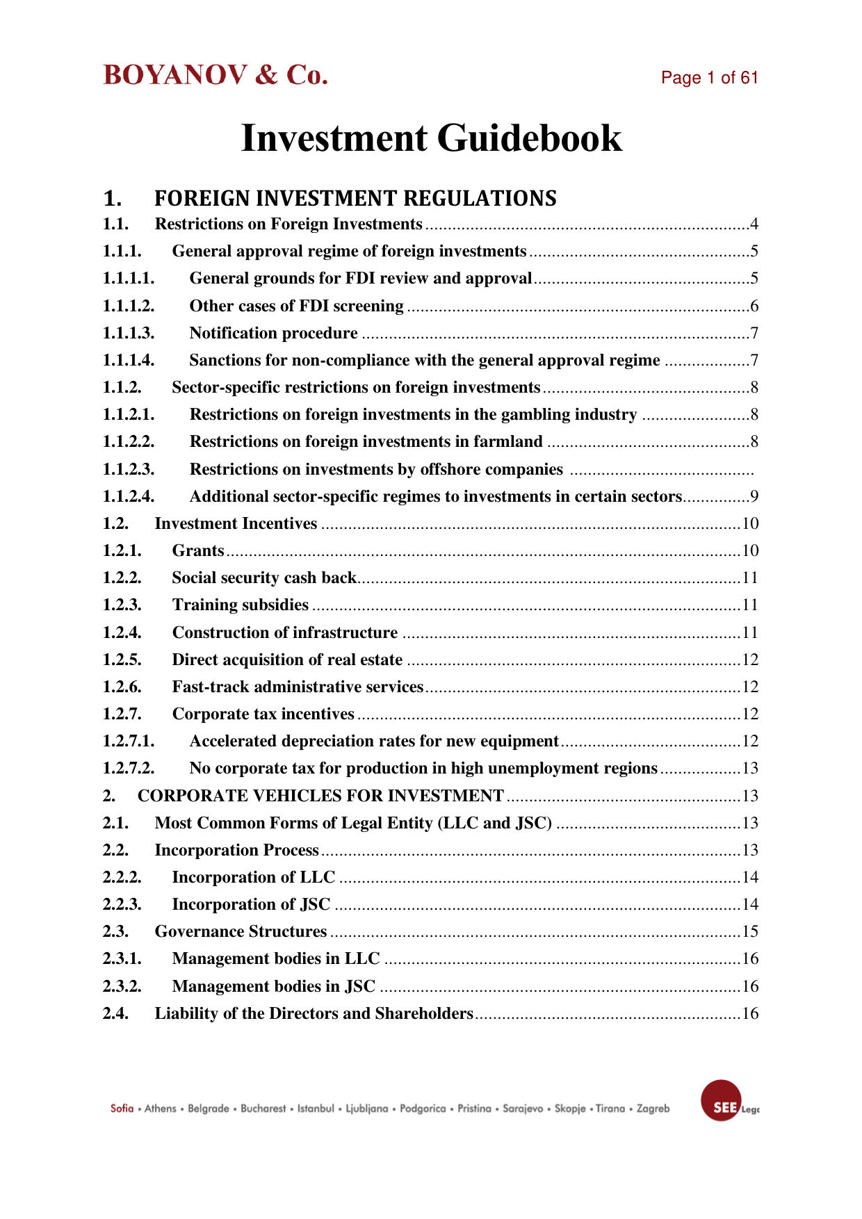 BOYANOV & Co . Investment Guidebook for Bulgaria